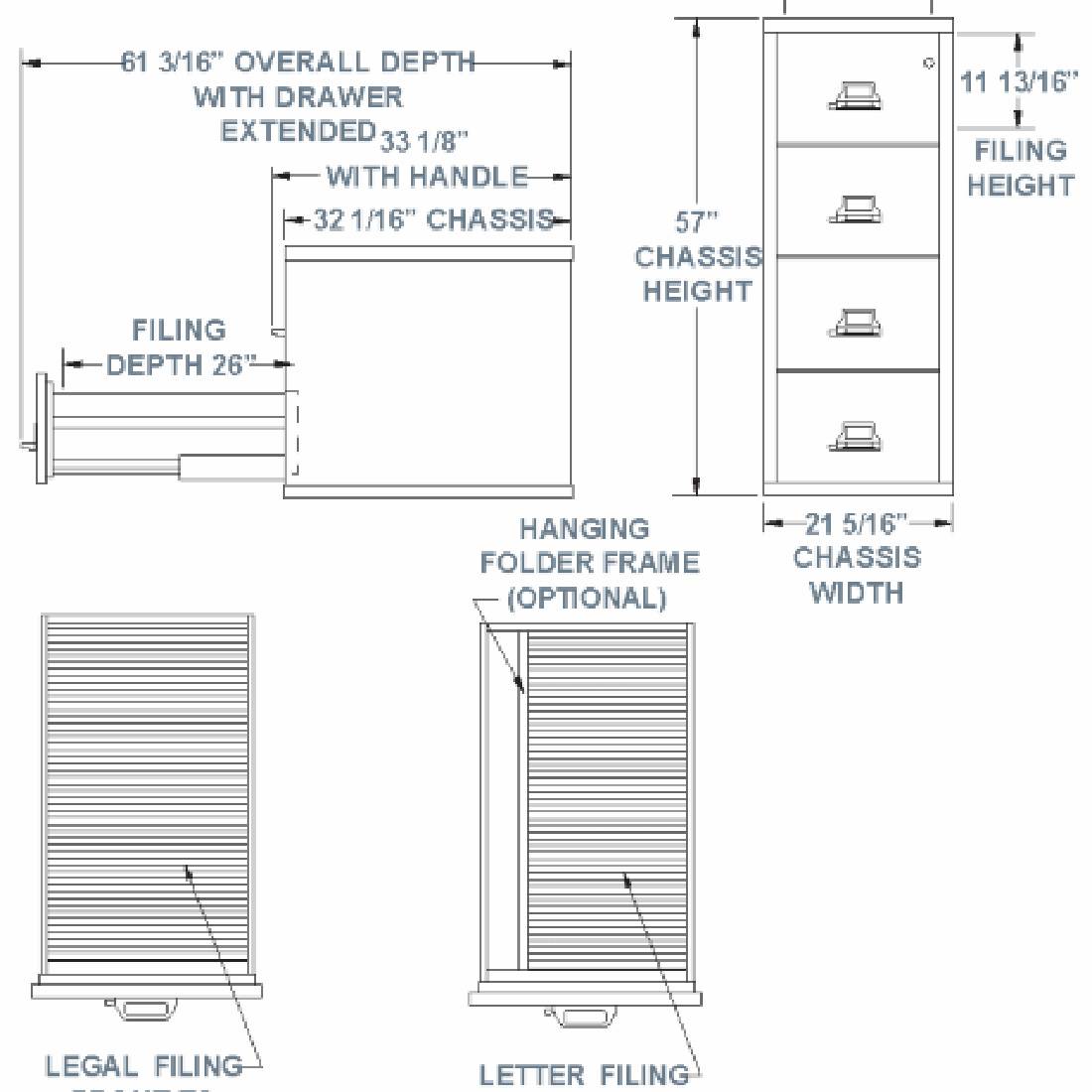 - Drawer Bodies - Built with high sides for use with hanging folders – no additional frames are needed. Each file includes 1 follower block per drawer.